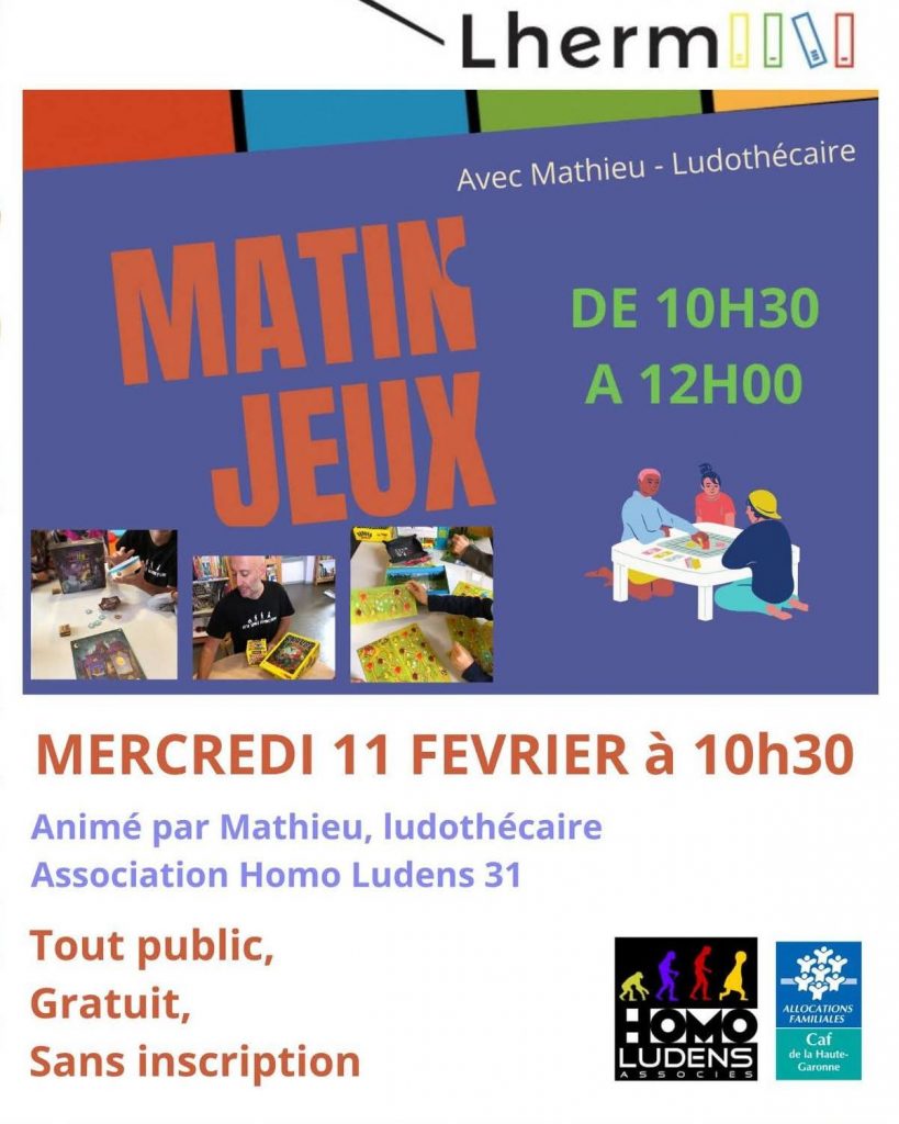 Nous sommes très heureux de pouvoir proposer une séance de jeux par mois à la médiathèque de Lherm.